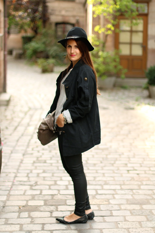Anfang letzter Woche hatte der Sommer uns in Nürnberg für ein paar Tage den Rücken gekehrt und stattdessen dem Herbst Platz gemacht. Anstelle von Sonne und Eiscafé standen also Regen und Tee auf der Tagesordnung. Daher gibt es heute für euch auch einen Look, den man wegen der leichten Jacke, dem Hut und den beschichteten Jeans eher als herbstlich angehauchten Wohlfühllook, statt als Sommerlook bezeichnen kann. Aber keine Bange, bevor die Jackensaison so richtig losgeht, habe ich hier am Blog noch einige sommerliche Outfits für euch geplant!:)